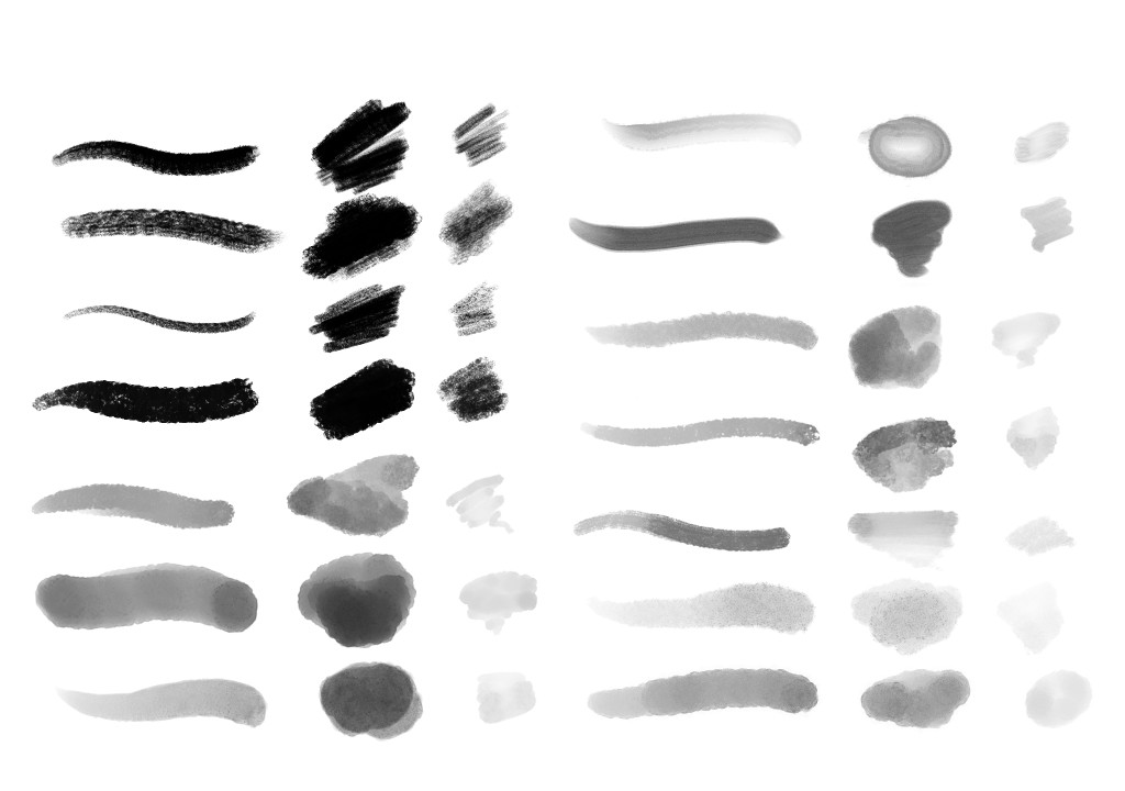 With the exception of Cracked Pastel Light and Wash Flat all brushes are texture free, the paper grain effect is obtained using custom tips captured from real media and designed from scratch.